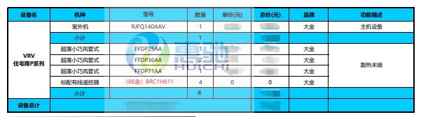 中央空調(diào)設(shè)備配置表